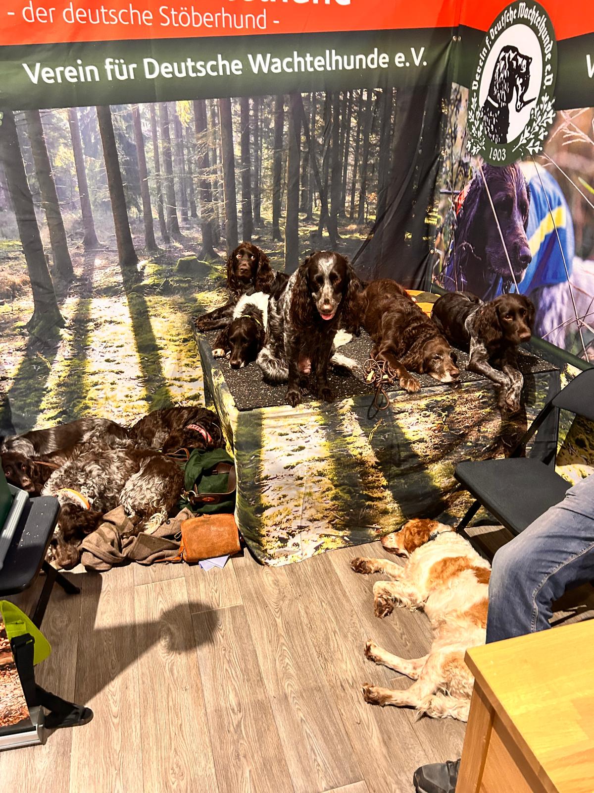 Auch in diesem Jahr war der Verein für Deutsche Wachtelhunde mit einem Stand auf der grössten deutschen Jagdmesse vertreten. Die vielen friedlichen Hunde am Stand waren ein Publikums Magnet.